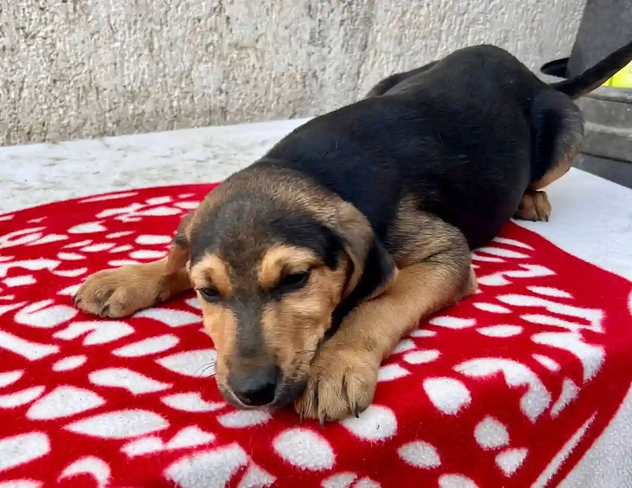 Mitte Dezember bekam eine Tierschützerin einen Anruf, dass im Wald Kartonschachteln gefunden wurden, in denen sich 7 Welpen befanden. Allein, hilflos und weggeworfen wie Müll, maximal 8 Wochen alt, voller Parasiten, das wäre ein Todesurteil gewesen. Einer dieser Welpen war ich. Zum Glück nahmen uns Tierschützer auf, brachten uns sofort zum Tierarzt, wo wir untersucht, behandelt und versorgt wurden. Nun sind wir alle gemeinsam auf einer Pflegestelle und dürfen ausreisen, wenn wir alt genug sind.