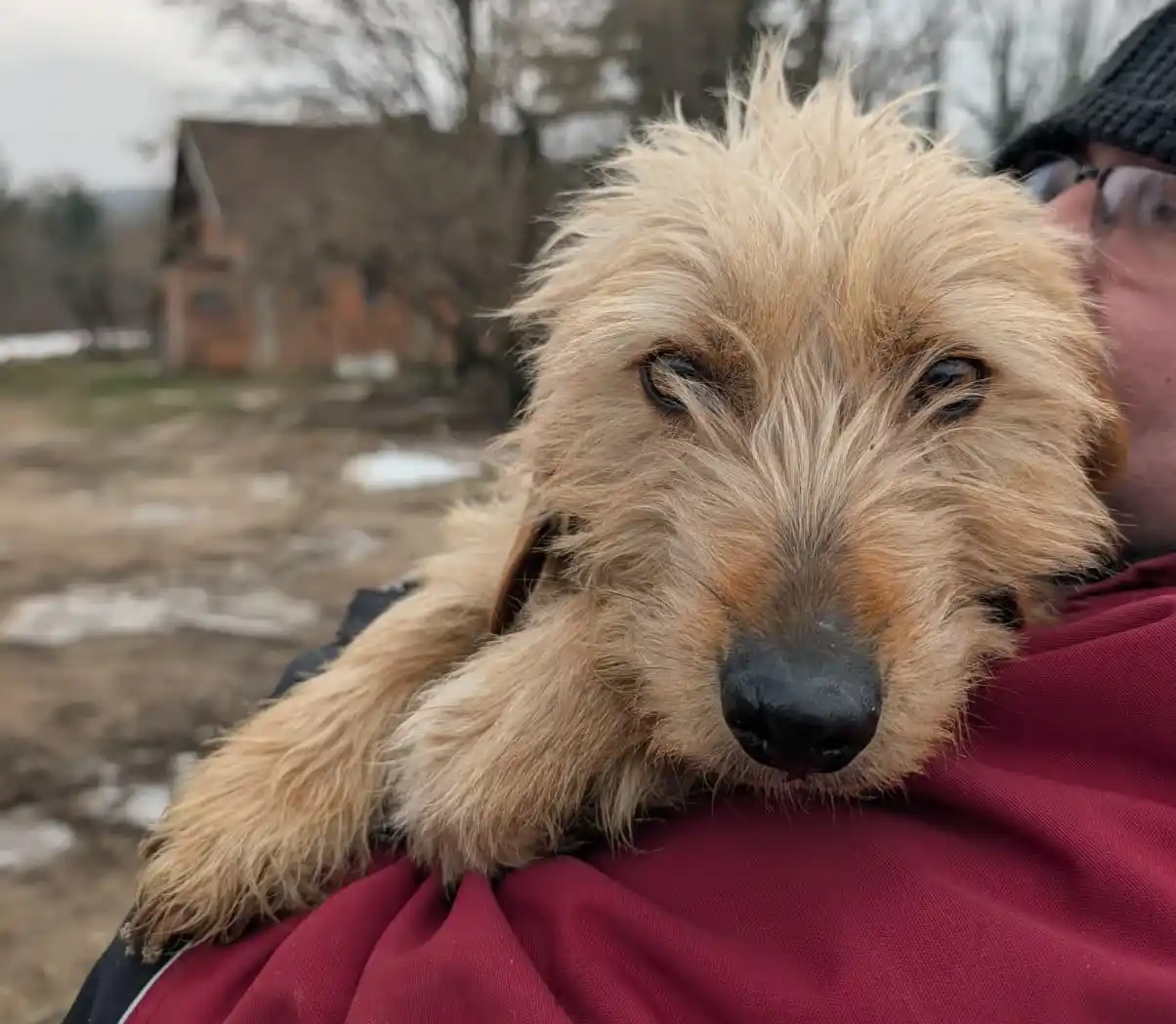 Ich wurde von der Müllabfuhr auf der Deponie ausgesetzt. Mersad sah mich und wusste, dass ich hier keine Überlebenschance hätte. Ich war sofort lieb und zutraulich, also sicherte er mich. Nun darf ich mit vielen anderen Hunden im Asyl leben. Ende März/ Anfang April ist meine Ausreise nach Deutschland geplant.