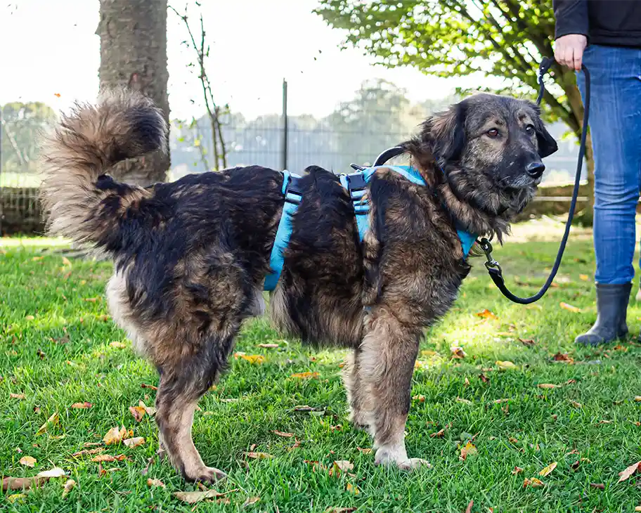 Ich bin ein zutraulicher und freundlicher Rüde im besten Hundealter. Ich habe keine Flausen mehr im Kopf, bin aufgeschlossen gegenüber Menschen und genieße Streicheleinheiten und Spaziergänge. Geschirr und Leine lasse ich mir ohne Probleme anziehen, an der Leine laufe ich entspannt, erkunde gerne die Umwelt und achte auf meinen Menschen. Mit Artgenossen bin ich verträglich, aber ich mag es nicht unter den vielen jungen und zum Teil wilden Hunden im Hundehaus und habe daher einen separaten Schlafplatz für mich. Hier verhalte ich mich ruhig, bin stubenrein und mache nichts kaputt. Leider sind meine Hinterbeine etwas krumm, das rührt von einer alten Verletzung her, die man heute aber nicht mehr operativ heilen könnte. Trotzdem wünsche ich mir sehr, dass ich ein schönes Zuhause bei Menschen finde, die mein ruhiges und umgängliches Wesen zu schätzen wissen. Meine Größe beträgt ca. 50 cm und ich wiege etwa 23 kg.