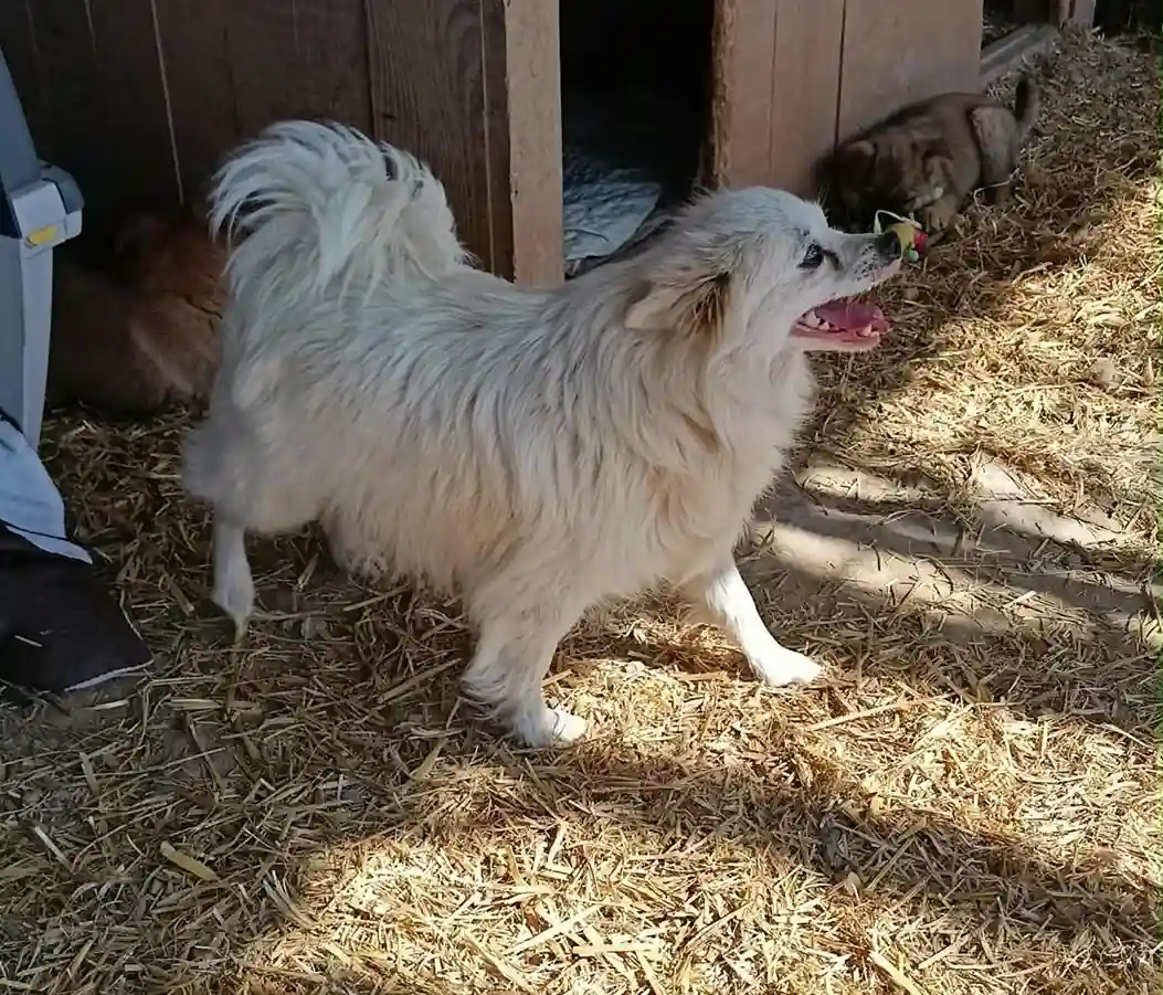 Ich bin eine zierliche, kleine Hündin (ähnlich einem Zwergspitz) und zeige mich menschenbezogen, kinderlieb und verspielt.