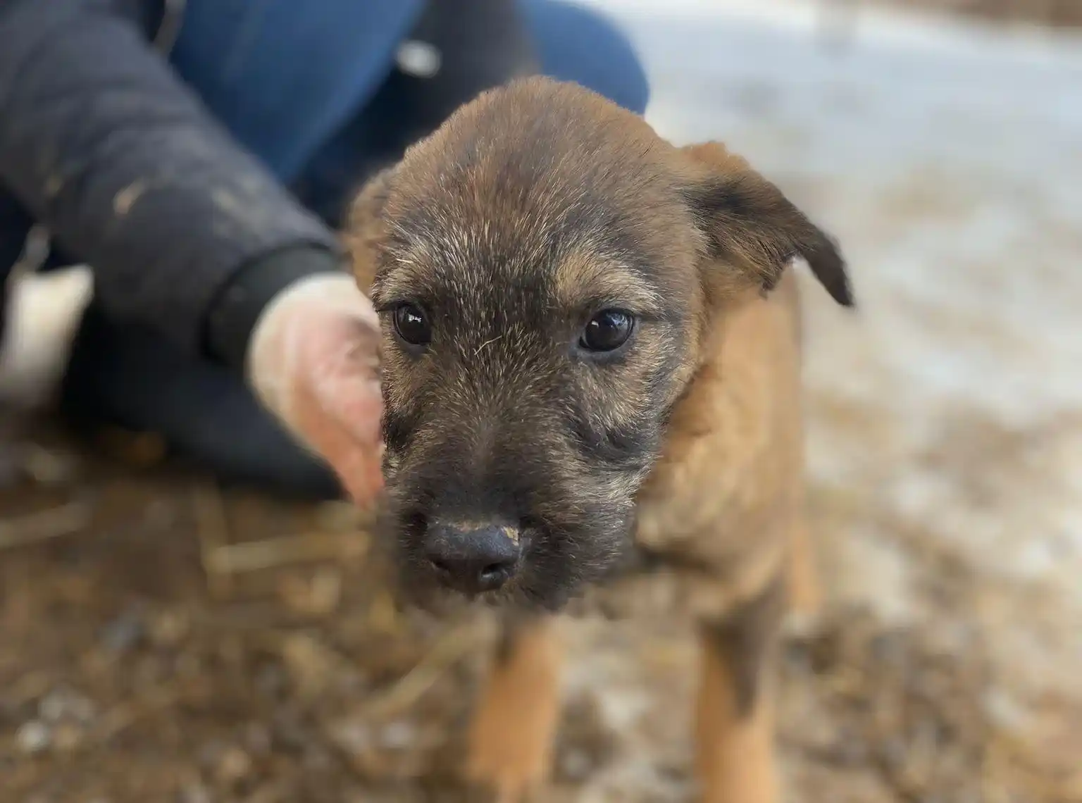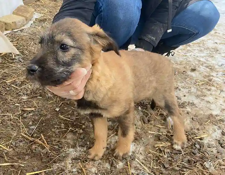 Ich bin ein kleiner Welpe und wurde im jungen Alter von Menschen aufgenommen und aufgezogen. Ausgewachsen werde ich eine kleine bis mittelgroße Hündin.