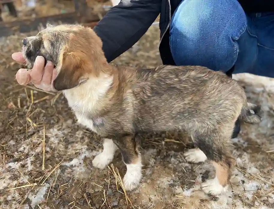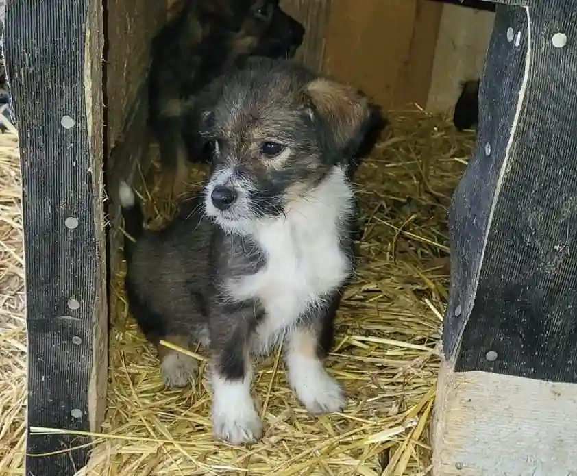 Eine Tierschützerin fand unsere Mutter Levka mit uns nur wenige Tage alten Welpen. Wir waren ausgesetzt worden. Zum Glück wurden wir aufgenommen und sind in Sicherheit gebracht worden. Mama und wir fünf Welpen – zwei Hündinnen und drei Rüden – leben auf einer Pflegestelle. Wenn wir alt genug zur Ausreise sind, werden wir in die Arche kommen.