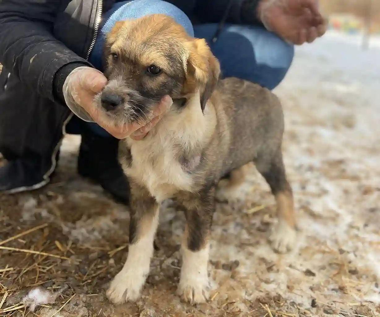 Ich bin ein kleiner Welpe und wurde im jungen Alter von Menschen aufgenommen und aufgezogen. Ausgewachsen werde ich eine kleine bis mittelgroße Hündin.