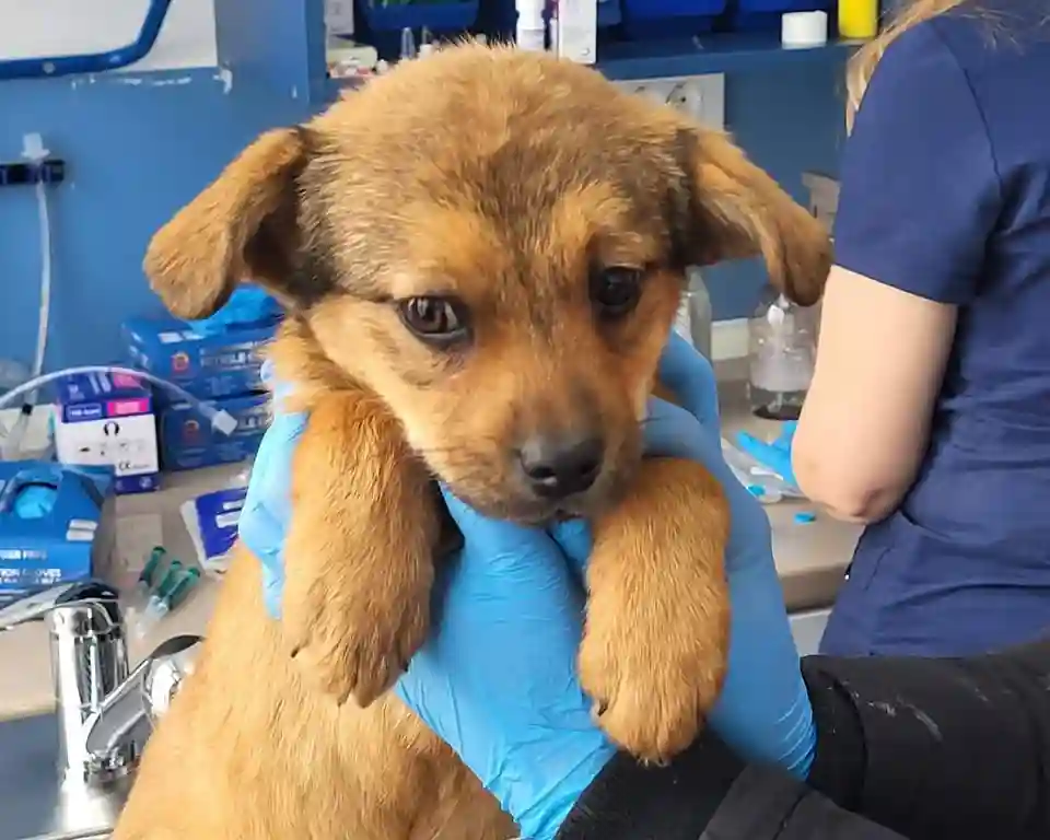 Meine Mutter Lilly wurde im Wald ausgesetzt und eine Tierschützerin kam ein Jahr lang regelmäßig und hat sie gefüttert. Sie war ängstlich und lies sich nicht einfangen. Dann wurde sie trächtig und bekam drei Welpen, meine Schwester Lina, meinen Bruder Lord und mich. Die Tierschützerin hat uns mit einem Käfig gesichert und zu sich zur Pflege mitgenommen. Hier können wir in Sicherheit aufwachsen und es gab immer genug Futter. Am 31.01.2026 kommen wir gemeinsam in die Arche und suchen dann ein eigenes Zuhause.