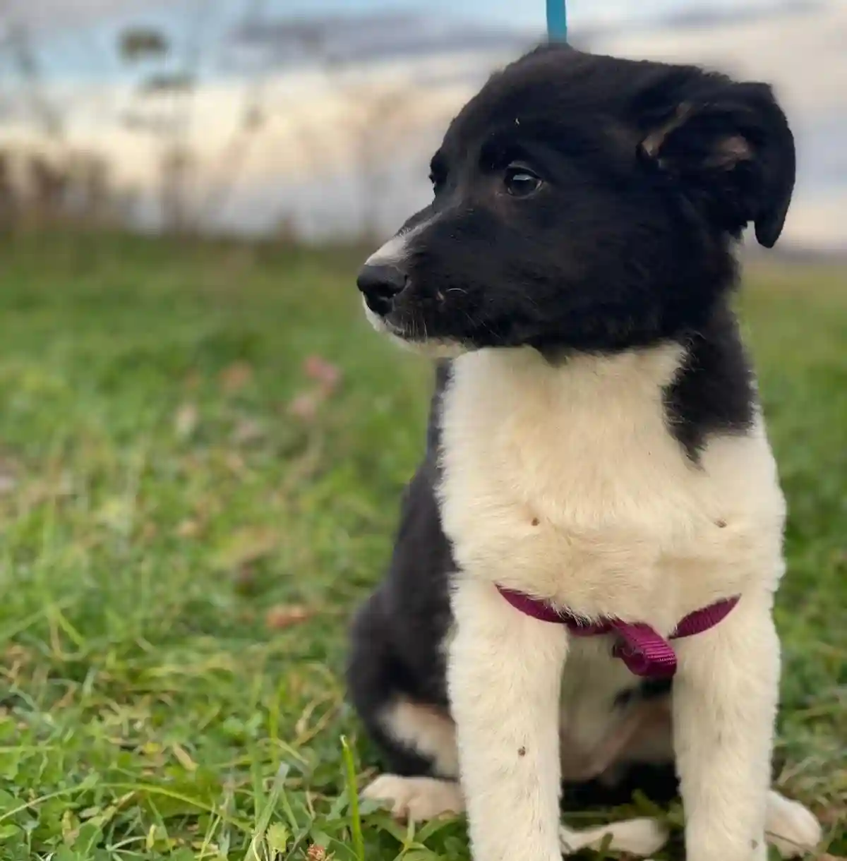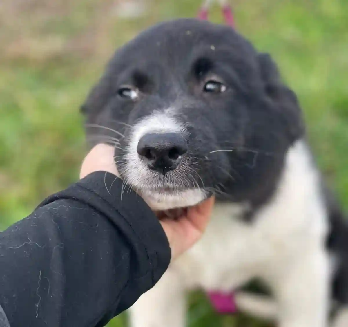 Ich bin eine junge Hündin, die nun im Kontakt mit Menschen aufwächst und ein Leben in Sicherheit führen darf.