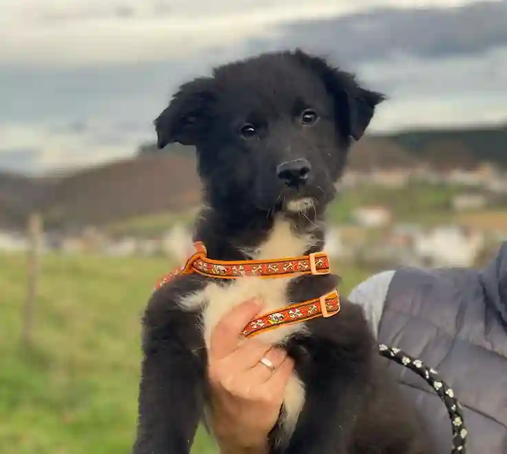 Ich bin ein junger Rüde, der nun im Kontakt mit Menschen aufwächst und ein Leben in Sicherheit führen darf.