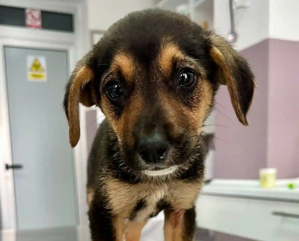 Tierschützer fanden drei Welpen ausgesetzt - ohne Schutz, Futter oder Wärme. Als sie die Welpen sichern wollten, stellten sie fest, dass es insgesamt acht kleine Leben waren, die ums Überleben kämpften. Sieben Hündinnen, eine davon bin ich und ein Rüde, allein gelassen beim Baucenter in Kljuc. Wir wurden untersucht, medizinisch versorgt und ich Sicherheit gebracht. Mitte Januar 2026 darf ich in die Arche in Westerkappeln (Deutschland) reisen.