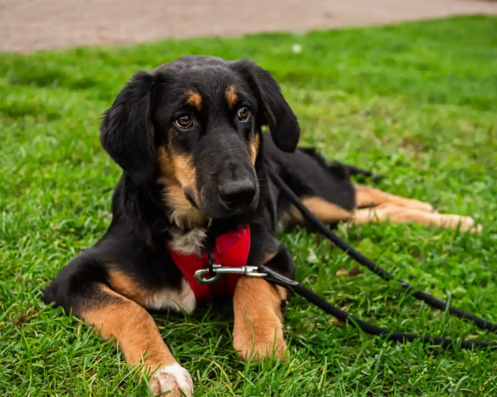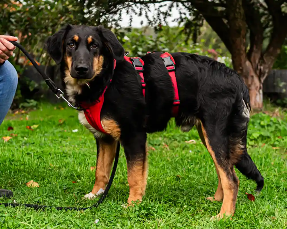 Ich bin ein junger Rüde, der eher zu den ruhigeren Hunden zählt. Menschen gegenüber zeige ich mich neugierig, komme angelaufen, aber beobachte alles eher mit etwas Abstand. Bisher fordere ich noch nicht aktiv Streicheleinheiten ein, lasse mich aber anfassen. Beim Anziehen von Geschirr und Leine bin ich nicht ängstlich, ich bleibe ruhig stehen und mache entspannt mit. Auf Spaziergängen laufe ich entspannt an der Leine. Bei vorbeifahrenden Autos bin ich noch skeptisch, aber das wird von mal zu mal besser. Meine aktuelle Größe ist 49 cm und ich wiege etwa 18 kg.